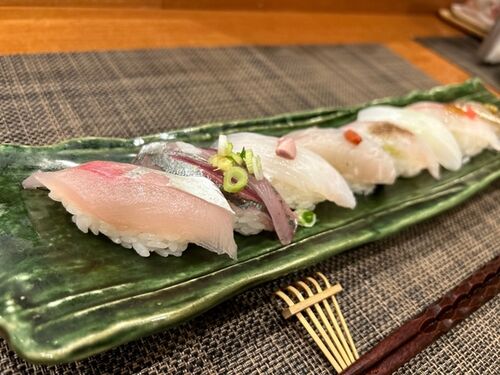 夕食をいただきにお邪魔しました。たまには、地物産の魚を使った寿司が食べたくなって、こちらのお店に伺いました。 まずは、瓶ビールです。 お母さんの手作りの総菜、3種盛りも運ばれてきました。アジの南蛮漬け、青菜の白和え、チャプチェ?、優しい味わ…
