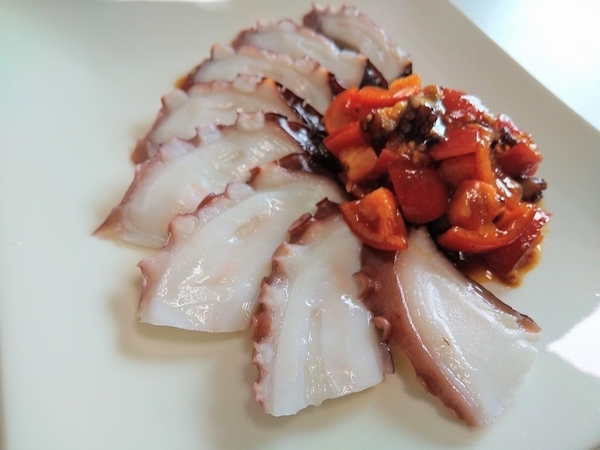 シンプルに刺し身を醤油でいただいても美味しんですが、マダコの旨みを直に味わいたくて、カルパッチョにしました。