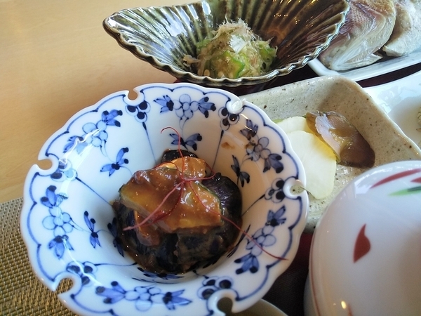 奥には、鮎の甘露煮、マダイの塩焼きです。